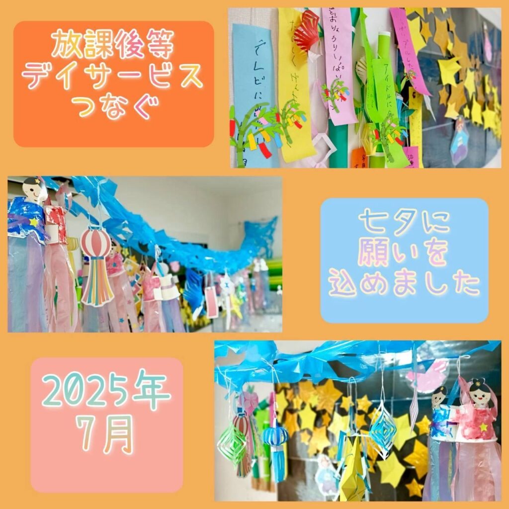 【放課後等デイサービス つなぐ】 七夕制作🎋 投稿日 2025/7/7 更新日 2025/7/12 著者 pondup カテゴリー ブログ 織姫と彦星を作り、色を塗ったり飾り付けをしました⭐そして七夕にむけて短冊に願いを込めました🎋