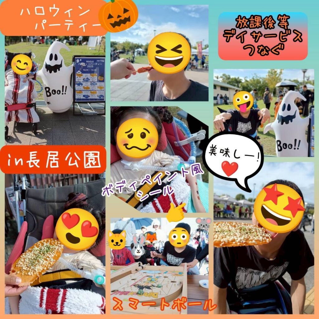 【放課後等デイサービス-つなぐ】 ハロウィンパーティー👻 投稿日 2025/10/22 著者 pondup カテゴリー 未分類 NAGAIハロウィンパーティー2025に参加してきました(トリックオアトリート)🎃ハロウィン用のタトゥーシールを貼ってもらったり、屋台ではフランクフルトやたこせんを食べました😋スマートボールでは4個ボールを穴に入れて景品もゲットしました🎁